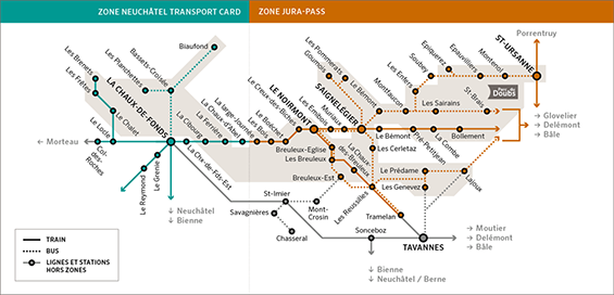 - Les villes de La Chaux-de-Fonds, du Locle et de Saint-Ursanne font partie du réseau des CFF.